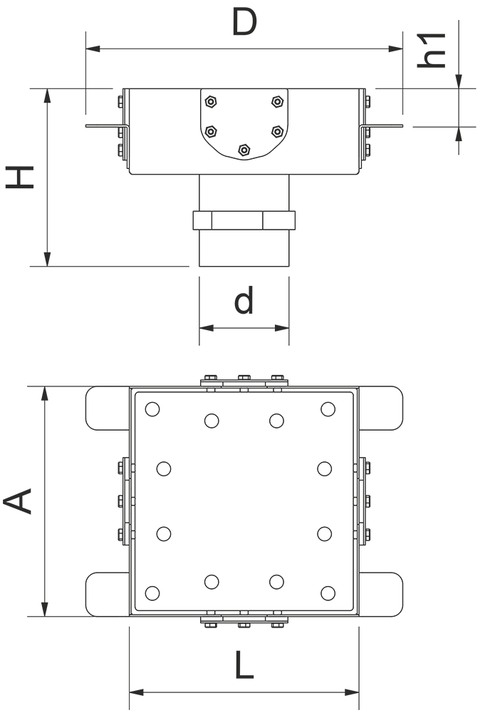 | L (mm) | A (mm) | H (mm) | D (mm) | d (mm) | h1 (mm) | Kg | Référence | Stock | Prix | Quantité | Action |