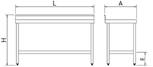 | L (mm) | A (mm) | H (mm) | E (mm) | Type de table | Nombre d'étagères basses | Kg | Référence | Stock | Prix | Quantité | Action |