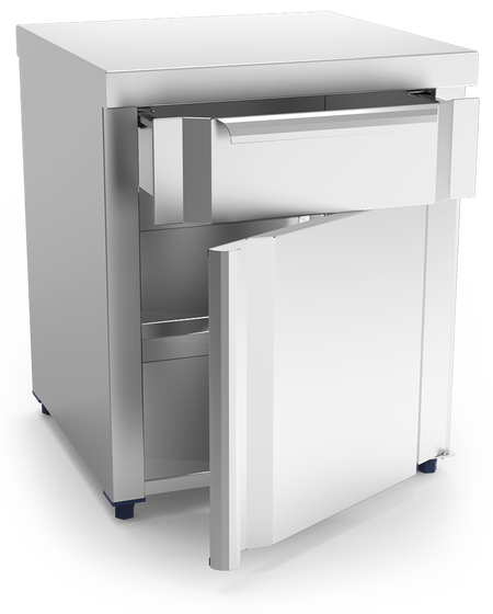 Este bloco de gaveta e porta de batente em aço inoxidável é projetado para atender às exigências de ambientes profissionais. Robusto e funcional, oferece uma solução ideal para armazenar talheres, ferramentas e muito mais, garantindo uma higiene perfeita.