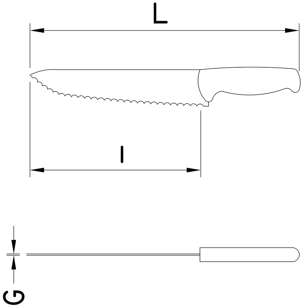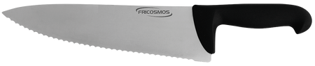 Faca de peixeiro com lâmina serrilhada e cabo injetado, projetada para cortar facilmente peixes e superfícies duras. Ideal para uso profissional em peixarias e cozinhas industriais.