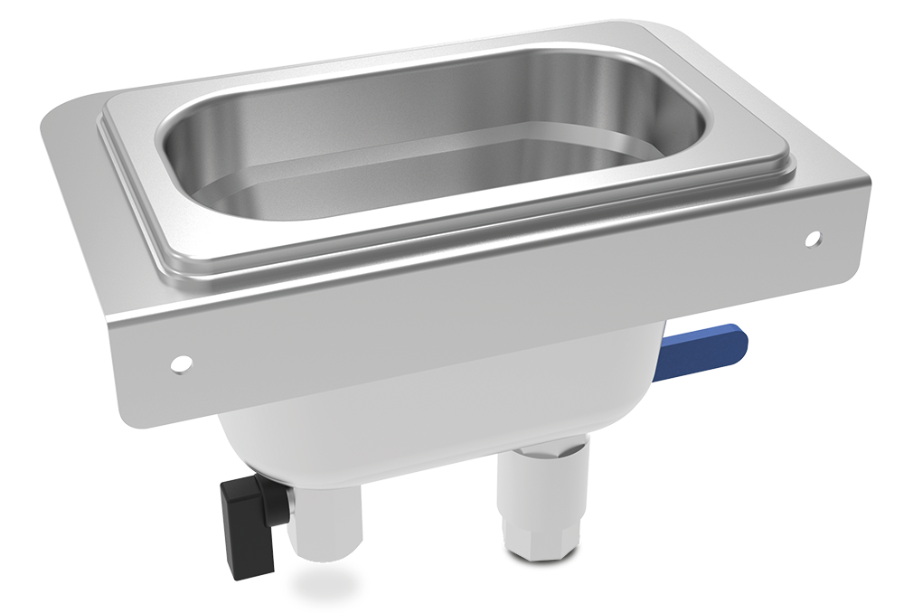 Enxaguador de colheres de gelado de parede, concebido para uma lavagem rápida e eficaz das colheres de gelado, otimizando o espaço de trabalho. Um acessório indispensável para sorveterias, pasteleiros e restauradores.