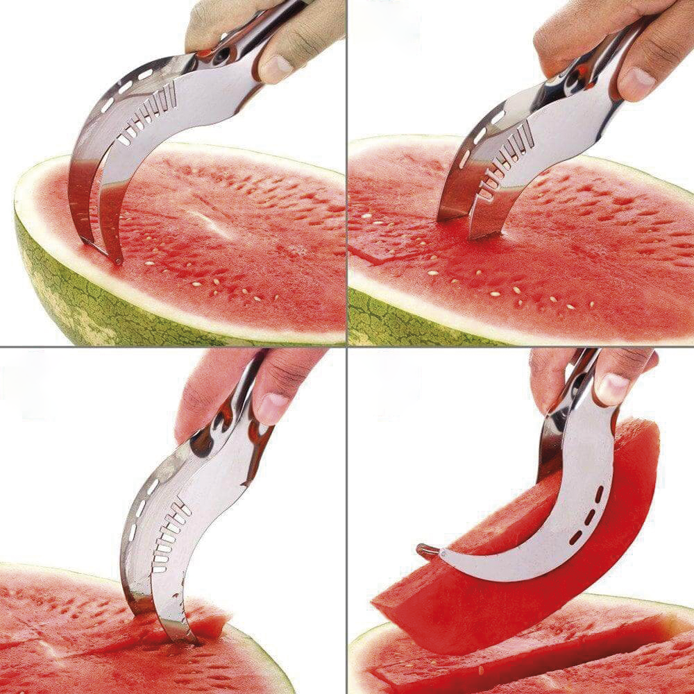 Faca fatiadora para melancia e melão, concebida para cortar facilmente fatias uniformes.