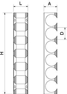 | L (mm) | A (mm) | H (mm) | D (mm) | Kg | Referência | Estoque | Preço | Quantidade | Ação |