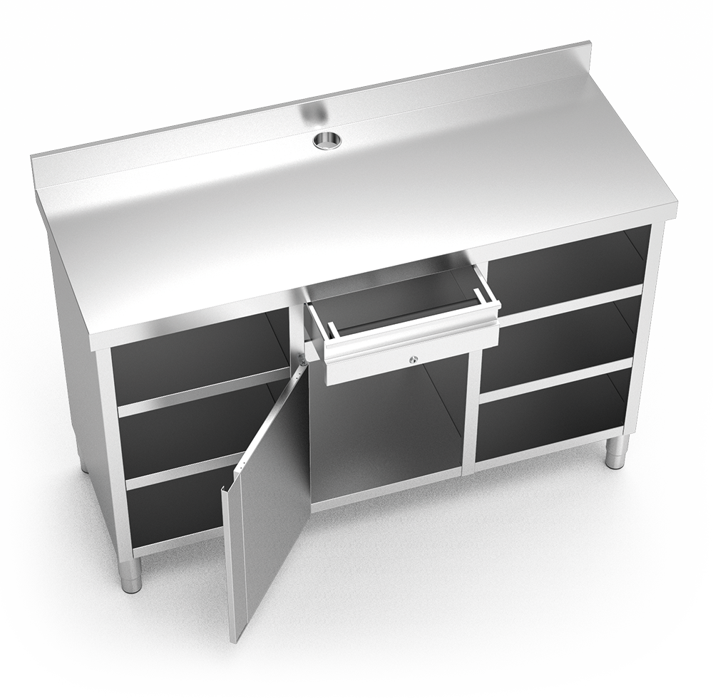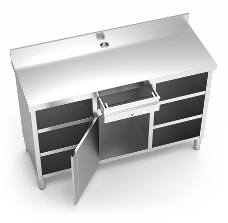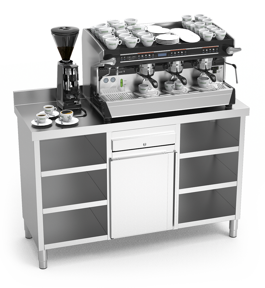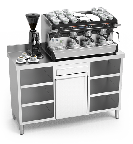 Meuble spécial pour cafetière,fabriqué entièrement en acier inoxydable.